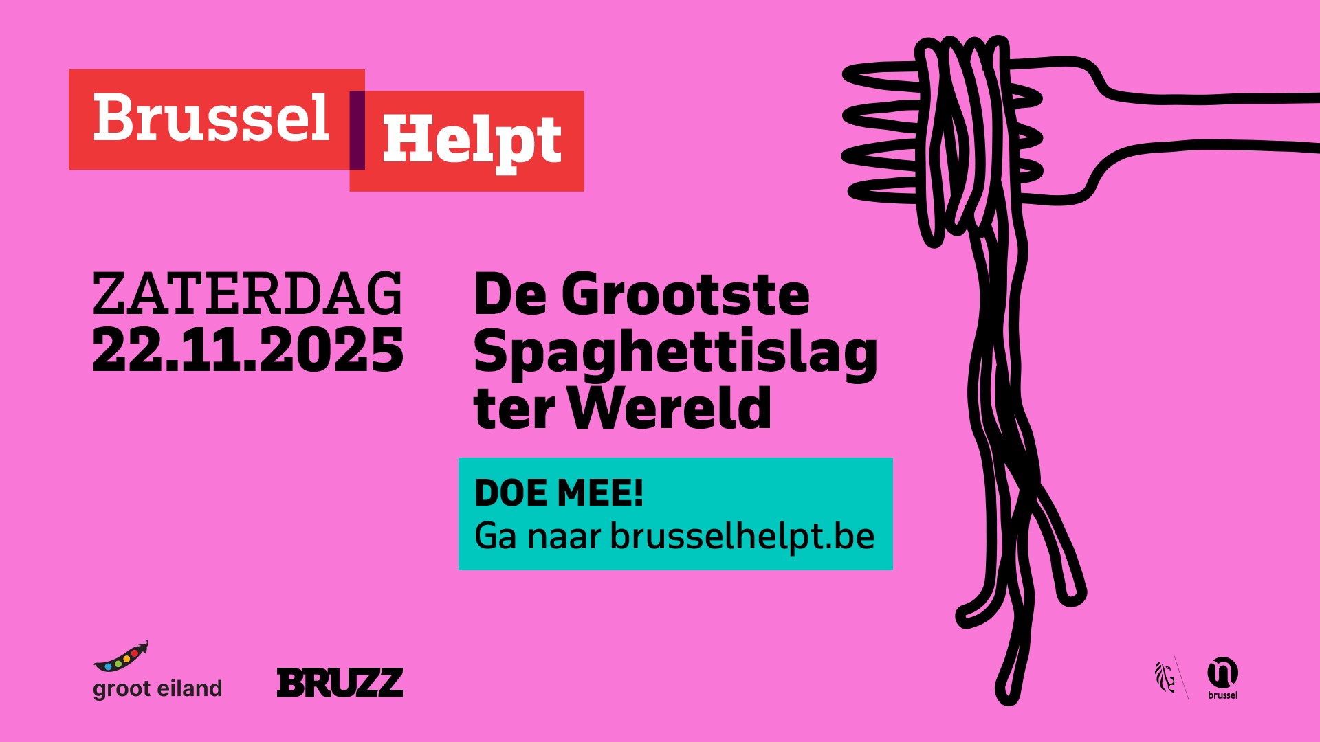 Hier vind je officiële logo's en banners van Brussel Helpt die je kan gebruiken om je spaghetti-event te promoten.